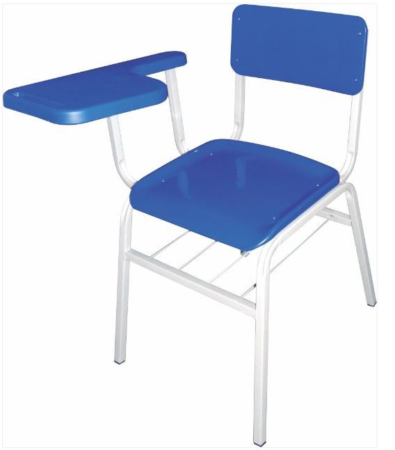 Cadeira Universitária com Prancheta Fixa conforme ABNT NBR 16671:2018 para tamanho 6. Assento e encosto em polipropileno, injetados na cor AZUL. Prancheta lateral em ABS Modelo: UNIR08