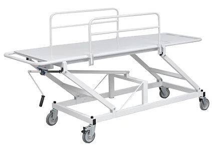 ELEVADOR PARA TRANSPOSIÇÃO DE LEITO ESTRUTURA EM TUBOS QUADRADOS DE AÇO CARBONO DE 50X50X5MM.- MOVIMENTO DE ELEVAÇÃO E REGULAGEM DE ALTURA ACIONADOS ATRAVÉS DE MACACO HIDRÁULICO. - RODÍZIOS:RODÍZIOS DE 3”, SENDO DOIS COM FREIO E DOIS SEM FREIO. - CAPACIDADE MÁXIMA: 150 KG. - DIMENSÕES ALTURA MÍNIMA: 650MM ATÉ O GANCHO DO CESTO.- ALTURA MÁXIMA: 1900MM. - LARGURA TOTAL: 560MM. - ALTURA DA DOS PÉS: 13CM. - MEDIDAS PARA TRANSPORTE: 100 X 45 X 145CM.